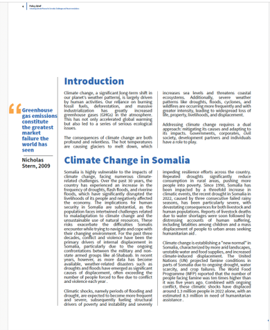 We developed a brief highlighting the challenges in Somalia and recommended effective strategies that can address climate challenges and promote a healthier, more sustainable future for Somalia.