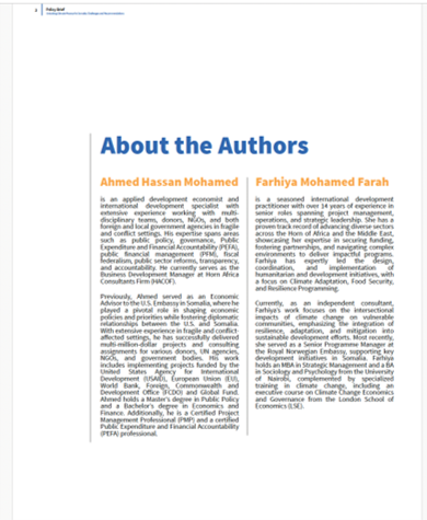 DEVELOPMENT & DESIGN OF A POLICY BRIEF FOR SOMALIA